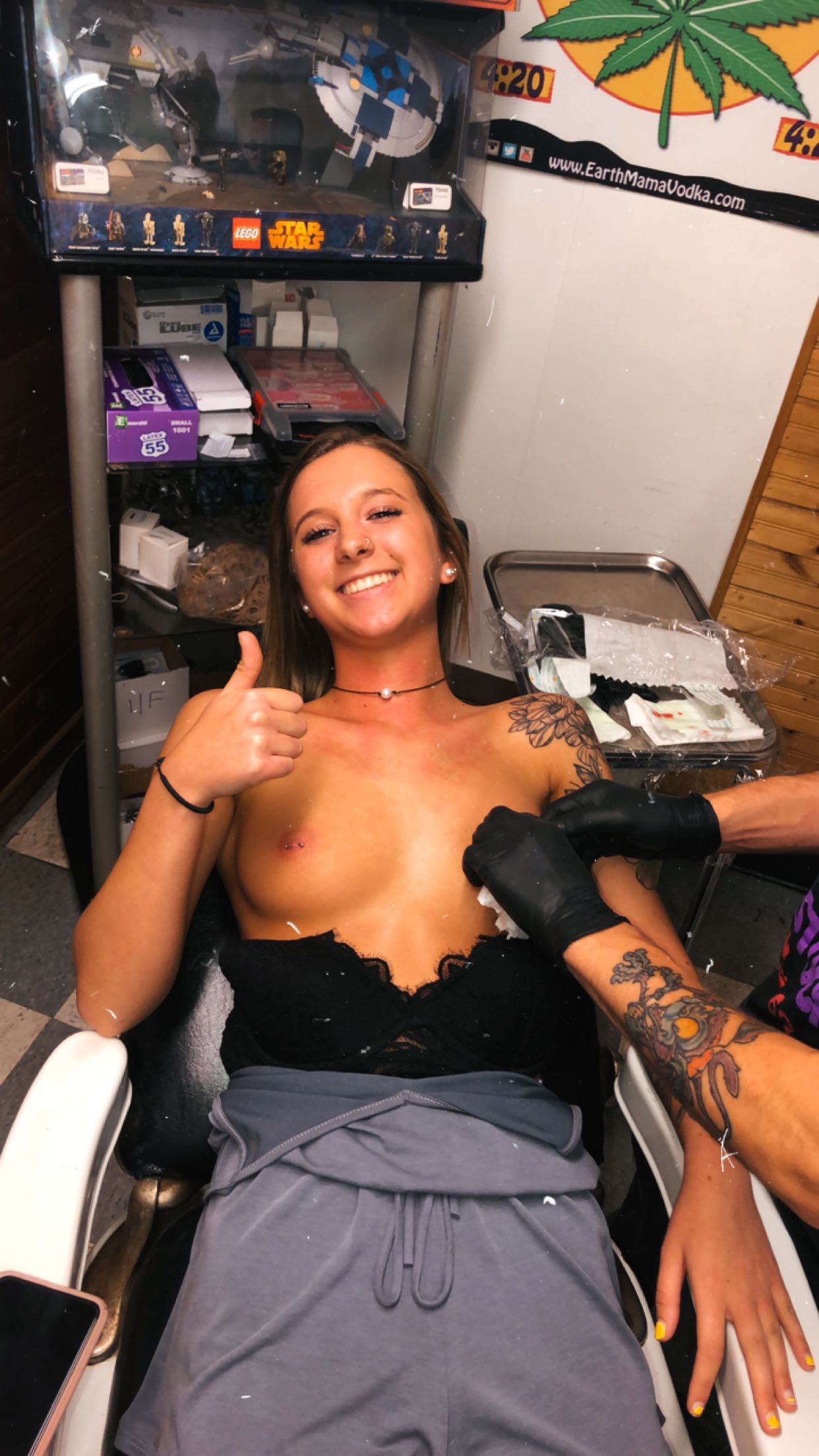 The one getting her nipple pierced is Madi Battles
